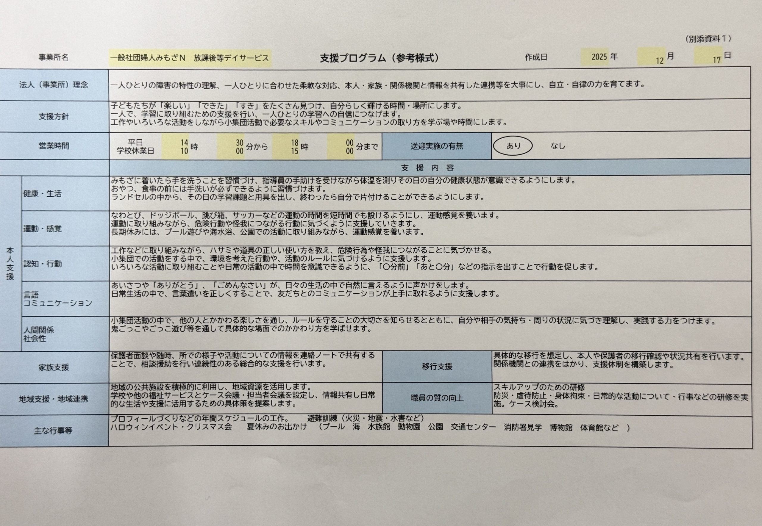 放課後等デイサービス評価表 集計結果報告のお知らせ
